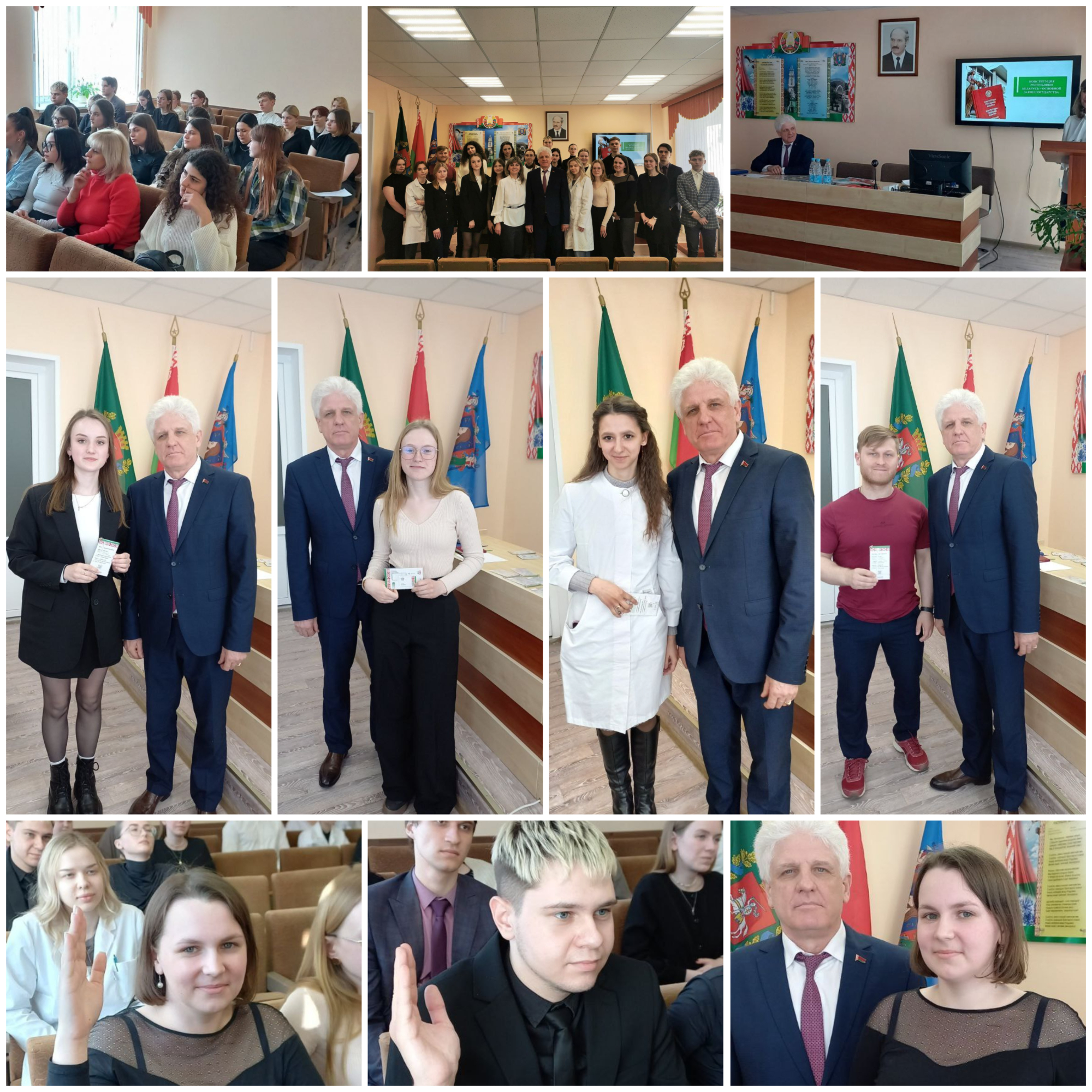 Ежегодно в Республике Беларусь 15 марта отмечается государственный праздник – День Конституции Республики Беларусь. В актовом зале филиала 4 - поликлинике 4 им.В.И. Ленина прошли мероприятия, приуроченные ко Дню Конституции Республики Беларусь. В уютном актовом зале собралась молодежь ГУЗ "ВГЦП". В качестве спикеров выступили заместитель главного врача по идеологической работе Наталья Геннадьевна Болтрушевич и заведующий филиалом 4 Леонид Анатольевич Маскин. Для участников мероприятия была подготовлена тематическая Викторина "Как я знаю Конституцию Республики Беларусь". Тем, кто лучше всех продемонстрировал свою правовую грамотность и знание Основного Закона страны, вручили Грамоты!!!! В рамках мероприятия торжественным моментом для молодых специалистов ГУЗ "ВГЦП", членов БРСМ, стало вручение им смарт-билетов!