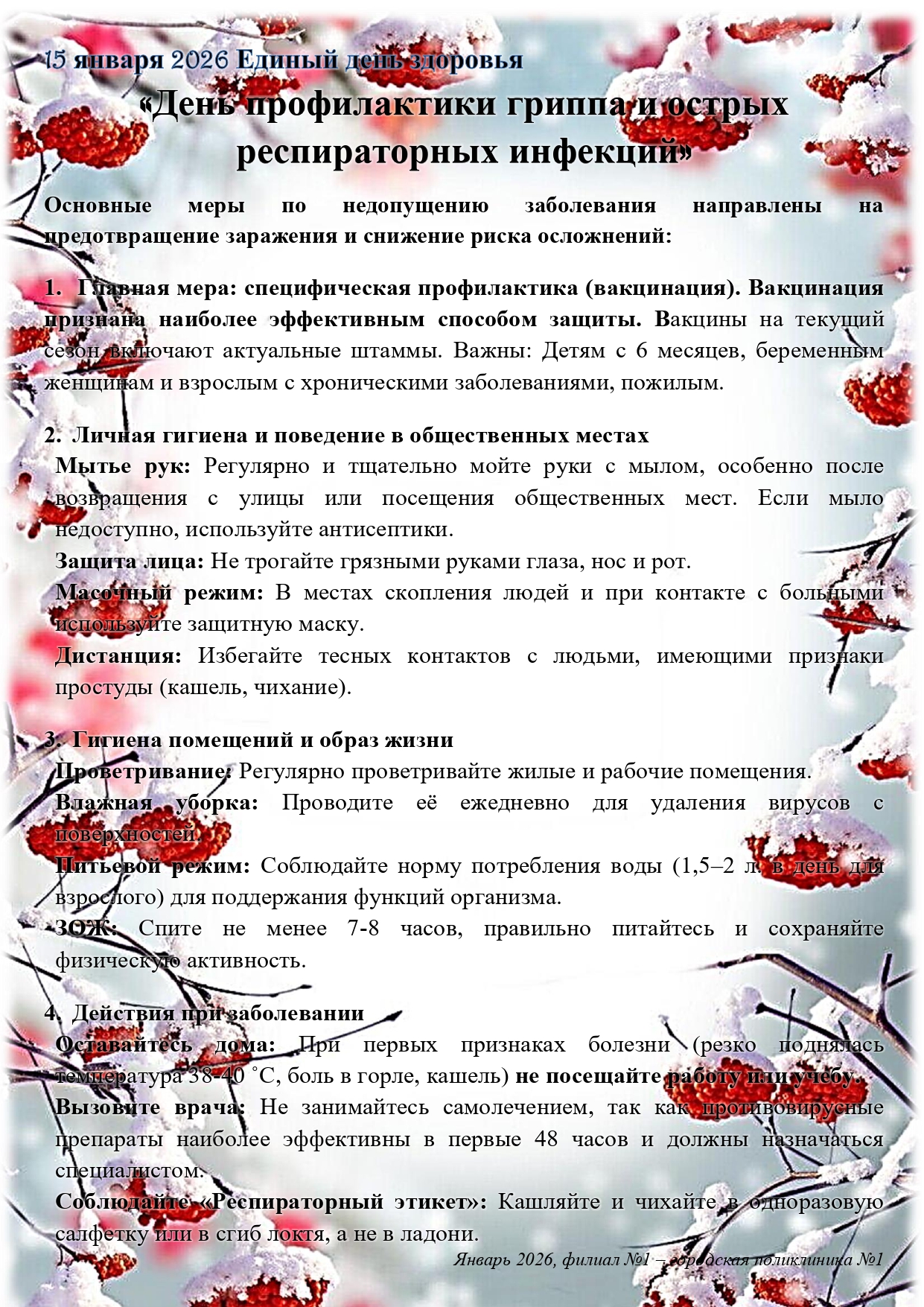 23 января 2025 года Единый день здоровья «День профилактики острых респираторных инфекций и гриппа»